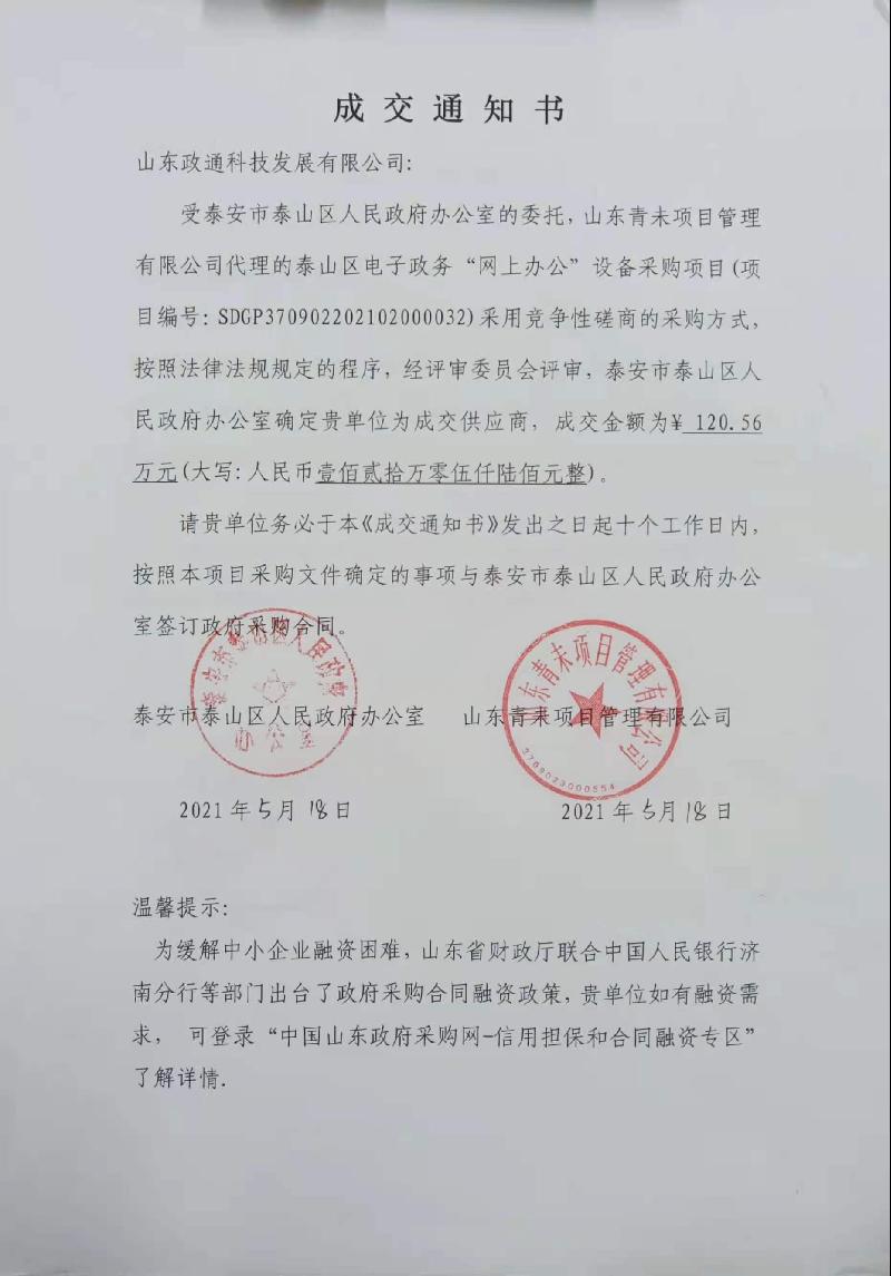 泰安市泰山区电子政务“网上办公”设备采购项目中标通知